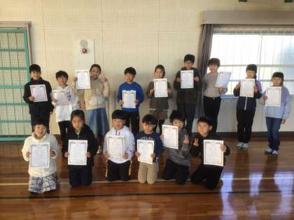 12/23 入賞おめでとう! 公開日 2021/12/23 更新日 2021/12/23 お知らせ マラソン大会の上位入賞者と、グラフコンクール銅賞の5年生です。 みんな、よくがんばりました。おめでとう!