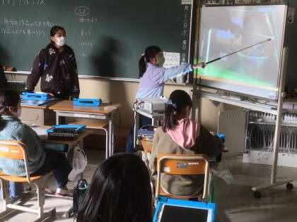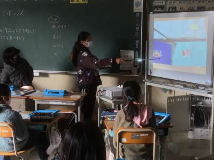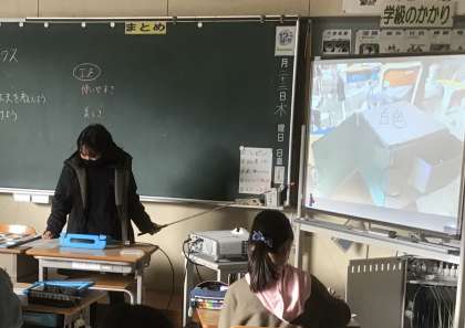 自分の工夫したところや見てほしいところをタブレットで写真に撮り、スクリーンに映して説明します流ので、見ている方もわかりやすいです。
