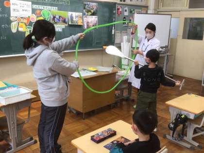 1/13 給食は誰が作ってくれるの?(1年生) 公開日 2022/01/14 更新日 2022/01/14 お知らせ 東部給食センターでは、1日に12,000食の給食を作っていて、その中に豊松小学校の給食も含まれています。 給食センターにいる栄養教諭から、給食がどのように作られているか、どんな人がその仕事に携わっているかを教えてもらいました。