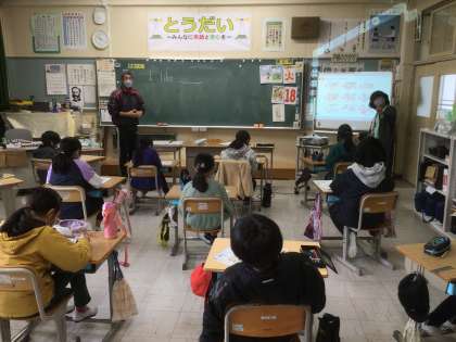 1/18 I like 〇〇.(4年生 外国語) 公開日 2022/01/18 更新日 2022/01/18 お知らせ 教室や音楽室、運動場などの、学校にあるいろんな場所の英語表現について勉強しました。 その後、ペアを作って、 I like gim.(私は体育館が好きです) のように、自分の好きな場所を紹介し合いました。