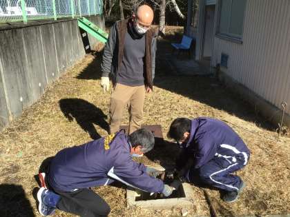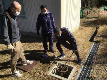 豊松小学校ではその作業が明日行われるので、今日はプールの水抜きをしたのですが、止水栓が重く、大人が二人がかりでやっと回せるほどでした。そんな先生たちのがんばりのお陰で昼過ぎには水が殆ど抜けていました。明日の作業は無事行えそうです。
