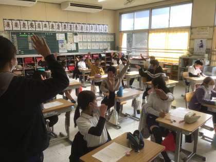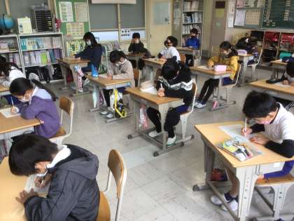 今日は鳥の声の聞き分け練習をしました。CDから鳥の声が流れた途端に「あれだ!」という表情で答えを書き始めるのには驚きました。答え合わせをしたところ、ほとんどの子が20問以上正解し、4人が全問正解でした。さすが鳥の学校、豊松小です。