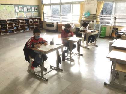 1・3・5・6年生は、昨日の知能検査や学力検査(外国語)に続いての実施です。