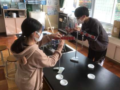 天びんがつり合うときの法則について話し合いました。