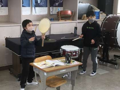 2/3 おかしのすきな魔法使い(3年生 音楽) 公開日 2022/02/03 更新日 2022/02/03 お知らせ ウィンドチャイム、ギロ、鉄琴、うちわ太鼓などの楽器を使って、魔法を使うときの音を表現します。 音の大きさを変えたり、楽器の組み合わせを工夫したりして、「魔法が成功しそうな音」を作ります。