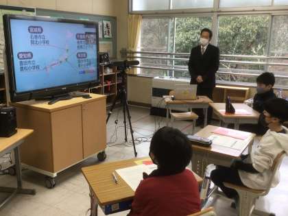 今回は、宮城県石巻市立開北小学校、東京都国分寺市立第十小学校、千葉県柏市立柏第三小学校と豊松小学校の5年生教室をオンラインでつなぎ、進行役のNHKアナウンサーと一緒にメディア・リテラシーについて考えました。