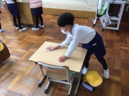 2/21 コロナなんかに負けないぞ(1年生) 公開日 2022/02/21 更新日 2022/02/21 お知らせ 帰りの会では、一日使った机などの消毒を行います。 1年生もすっかり慣れて、先生に言われなくても自分たちでできるようになりました。