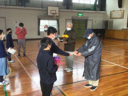 2/22 ありがとうございました 公開日 2022/02/24 更新日 2022/02/24 お知らせ 授業やクラブ活動、校外学習などでお世話になった地位講師のみなさんに感謝をする会を予定していましたが、「まん防」が継続しているため行えません。やむ無く、機会をとらえて、個別にお渡しすることにしました。 今日は、クラブ活動の最終日だったので、棒の手クラブで1年間お世話になった講師の岡田さん、岡野さん、伊藤さんに感謝の手紙と鉢花を贈りました。