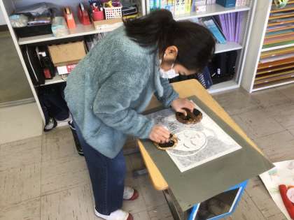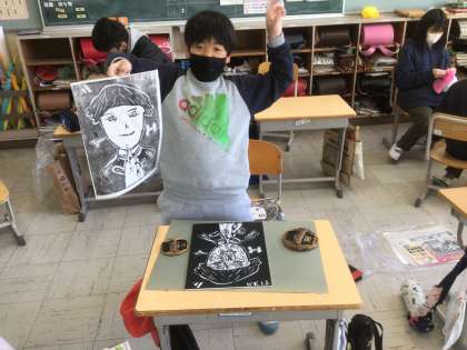 2/24 木版画(4年生 図画工作科) 公開日 2022/02/24 更新日 2022/02/24 お知らせ 版画を彫り終わり、インクをつけて印刷しました。 実際に刷ってみると随分雰囲気が変わります、下書きを描いたときのイメージ通りできたでしょうか?