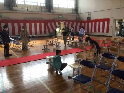 3/17 卒業式の準備をしました 公開日 2022/03/17 更新日 2022/03/17 お知らせ 午後からは3年生・4年生・5年生が、明日の卒業式に向けて会場づくりを行いました。 「6年生を送る会」に続き、二度目の在校生による準備です。一つ仕事を終えると、周りを見て手伝いに移動する意識の高い子が何人も見られました。