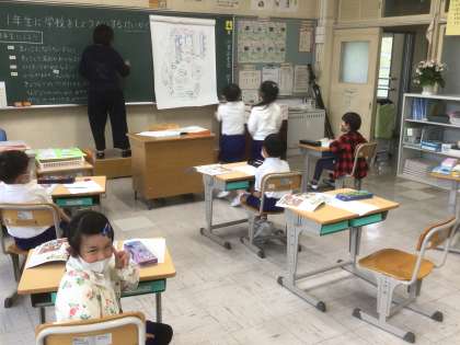 2年生が、1年生に豊松小学校の紹介をする計画をしていました。一年間豊松小学校で過ごしてきた先輩として、1年生が
