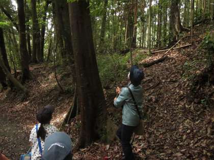 途中、冬の探鳥会でムササビがいた木にも寄ってみましたが、今日は反応がなかったようです。