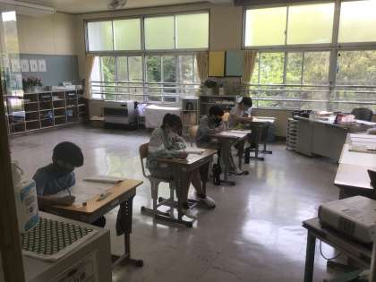 6年生は全国学力・学習状況調査を行い、1〜3時間目には国語・算数・理科のテスト、4時間目には自分の学習や生活に関する簡単なアンケートに答えました。