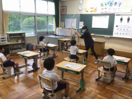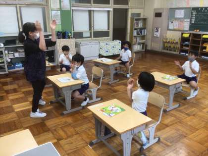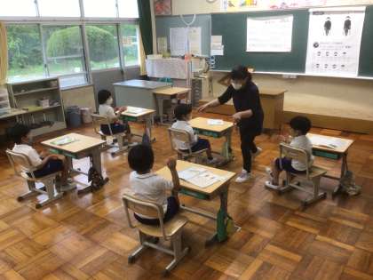 4/26 リズムにのって(1年生 音楽) 公開日 2022/04/26 更新日 2022/04/26 お知らせ 2拍子のリズムに乗って、手を叩いたり足を鳴らしたりしました。 みんなで一斉にやったり、順番にやったりするときには、音が揃うようにタイミングを合わせて叩きます。