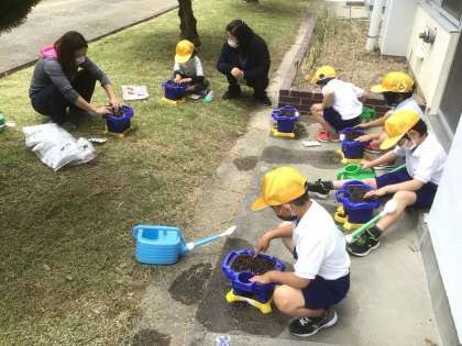 5/11 アサガオの種まきをしました(1年生 生活科) 公開日 2022/05/12 更新日 2022/05/12 お知らせ アサガオの種をまきました。 はじめに映像を見ながらまき方の説明を聞き、その後、それぞれのポットに種をまき、水やりをしました。 早ければ4〜5日で芽を出します。楽しみです。