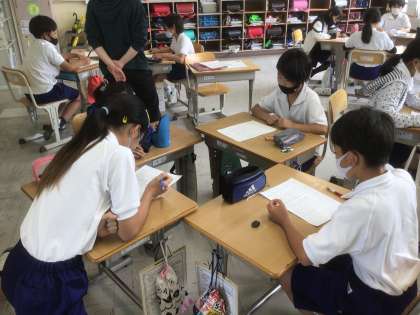「ある子の嫌なところを、友達とこっそり言い合った」や「消しゴムを忘れたので借りようとしたら断られた」などについては、意見が分かれていましたが、最後に担任から、文科省による「いじめ」の定義(一定の人間関係のある相手から、心理的・物理的な攻撃を受けた人が、苦痛を受けていると感じているものを「いじめ」という)について聞き、認識を新たにしたようでした。