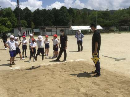5/24 体力テストを行いました(全校 体育) 立ち幅跳び 公開日 2022/05/24 更新日 2022/05/24 お知らせ 立ち幅跳びでは水平方向に跳ぶパワーが要求されます。主に使うのは下半身の筋肉ですが、腕も振りながら体をうまく使って効率よくパワーを引き出すことも必要です。 3年生以上については、後日、長座体前屈や反復横跳び(5・6年生は、更に握力、上体起こし、20mシャトルラン)の測定を行います。