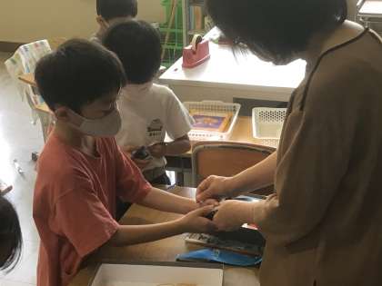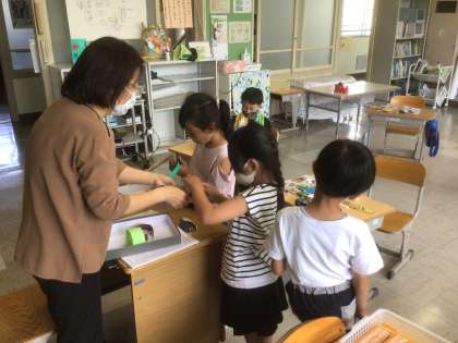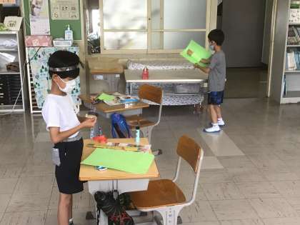 6/2 わっかでへんしん(2年生 図工) 公開日 2022/06/03 更新日 2022/06/03 お知らせ 画用紙で作った「わっか」にいろいろな飾りをつけて変身します。 頭につけているのは冠になりそうです。腕に付けているのは盾?なのでしょうか。完成が楽しみです。