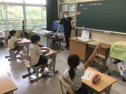 市内にあるスーパーの食品売り場の写真を見ながら、各売り場ではどんな仕事が行われているか考えました。