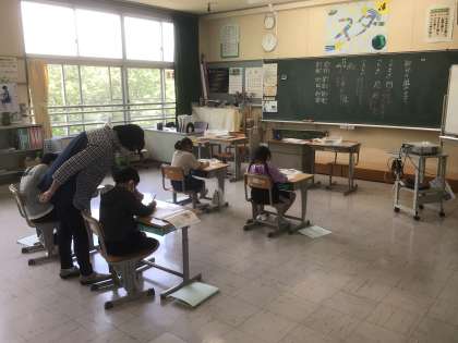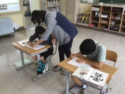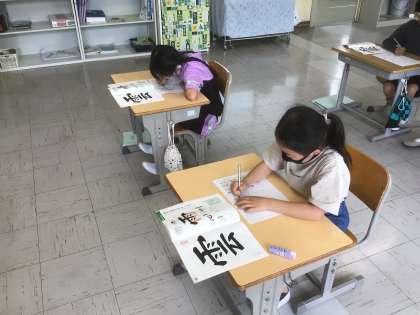 6/9 バランスよく書くために(4年生 書写) 公開日 2022/06/09 更新日 2022/06/09 お知らせ 「雲」という字は「雨」と「云」とが上下に並んでいます。単独で書くときより高さを低くして書いてみるとバランスのよい字になるようです。今日は硬筆を使って練習をしました。