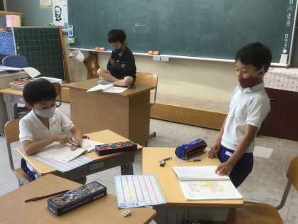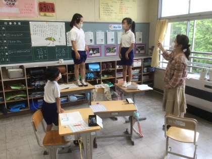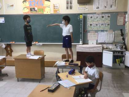 6/14 劇の練習中です(2年生 国語) 公開日 2022/06/14 更新日 2022/06/14 お知らせ 「名前を見てちょうだい」の朗読劇の練習をしています。 大男の雰囲気を出すために、机の上に乗っているのだそうです(教室に入ったときは、ちょっとびっくりしましたが…笑)。