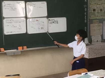 テープ図に「はじめの数」「もらった数」「ぜんぶの数」などを書き込んだりしながら、「もらった数」の求め方を考え、説明し合いました。