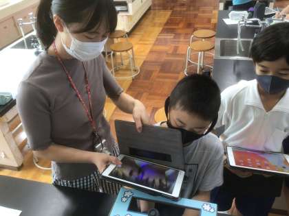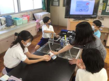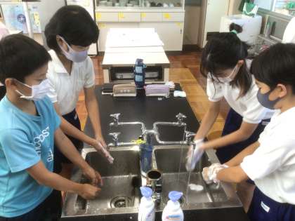 きちんと手を洗おう(5年生 保健) 公開日 2022/09/06 更新日 2022/09/06 お知らせ 「手洗いチェッカー」という専用ローションを手に塗ったあと、いつものように水や石鹸を使って手を洗います。洗い終わった手にブラックライトを当てると、ローションの残っている部分が黄色く光り、洗えていないところがよく分かりました。