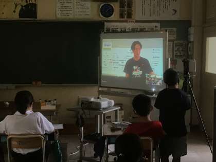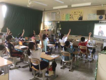 今日は、5年生教室と元バドミントン全日本チャンピオンの平田典靖さんとをオンラインでつなぎ、夢を叶える方法をアドバイスしてもらいました。