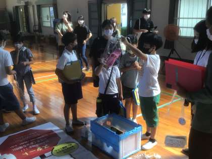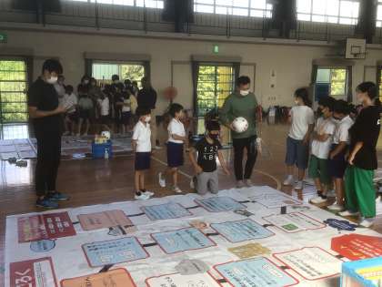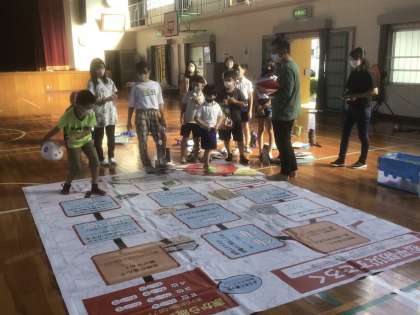 防災キャンプ(松平防災すごろく) 公開日 2022/10/04 更新日 2022/10/04 お知らせ 6つの防災グッズ(ラジオ、懐中電灯、乾電池、救急用品、笛、スリッパ)から3つを選び、トラブルを回避しながらゴールの避難所を目指すすごろくです。 PTAの役員さんに遊び方を教えてもらいながら、楽しく防災グッズの大切さを学びました。