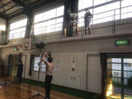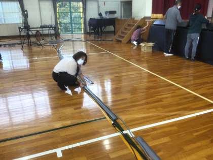 下校後、先生たちが照明器具や音響器具の配線作業や部隊周辺の清掃をしてくれました。