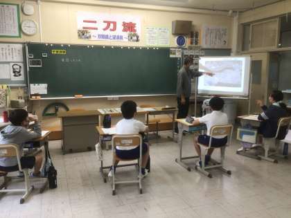 創立150周年の年にちなんで、6年生は豊松小学校の歴史を紹介する劇を行うようです。旧校舎(現在の豊松こども園)や移転した当時の新校舎の写真を見ながら昔の豊松小について勉強しています。