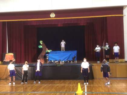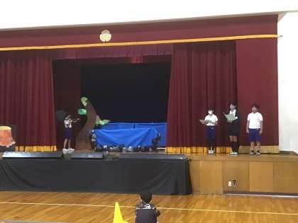 学芸会下見会(5年生) 公開日 2022/10/28 更新日 2022/10/28 お知らせ 5年生の「金の斧 銀の斧」の下見会をしました。 普通の話にひねりが加えられ、楽しいながらもちょっと考えさせられる「金の斧 銀の斧」に仕上がってします。 手製の大道具や小道具を効果的に使って劇の雰囲気を盛り上げています。
