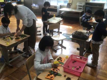 あきはともだち(1年生・生活科) 公開日 2022/10/31 更新日 2022/10/31 お知らせ 校庭で、モミジやどんぐりなどの秋を感じる草花を集めました。 教室にもどってから、ボンドを使って画用紙に貼り付けて「秋のかんむりづくり」をしました。