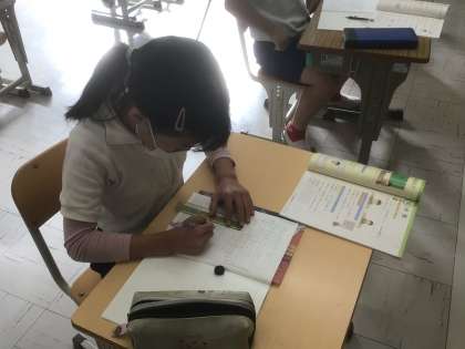 黒板に先生が描いた図を見ながら答えます。すらすら答えることができます。なかなか優秀です。