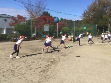 ボールなげあそびをしました(1・2年生 体育科) 公開日 2022/11/16 更新日 2022/11/16 お知らせ 今日から「ボールなげあそび」の勉強です。 最初は、紙飛行機を投げるときのように、体を横に向けておくとよいそうです。 からだ全体を使って思い切って投げました。かなり遠くに飛ばせる子もいるようです。 最後には、ペアを作ってキャッチボールもしました。