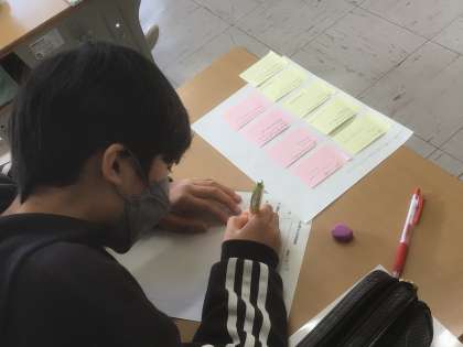 今日は、集めた材料の中から伝えたいことを選び、話を組み立てました。