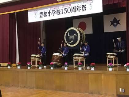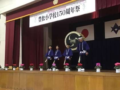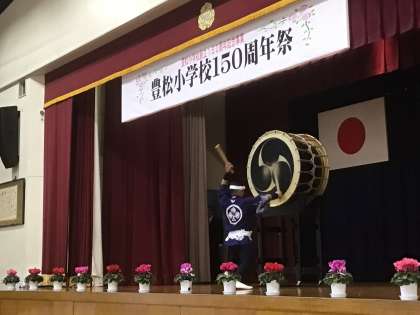 150周年祭(記念演技 その2) 公開日 2022/11/19 更新日 2022/11/19 お知らせ 豊松小学校の卒業生で、和太鼓演奏家の青木崇晃さんと豊松たちばな太鼓の子どもたちが和太鼓の演奏をしてくれました。 子どもたちの息の合った演奏に感心し、青木さんの大太鼓独奏の迫力に圧倒されました。