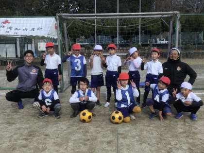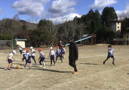 グランパスボールクリニック(1・2年生 体育) その2 公開日 2022/12/15 更新日 2022/12/15 お知らせ 後半は2チームに分かれてミニゲームをしました。 始めは、ボールに群がって団子状態になっていましたが、コーチの「ドリブルをする子の邪魔にならないようにしよう。パスをもらえる位置にいるようにしよう」という指示を聞いて2試合目からは周りの様子を見ながら動く姿も見えるようになりました。 授業を終えた後は、みんな満足そうな表情で「楽しかった」と話していました。
