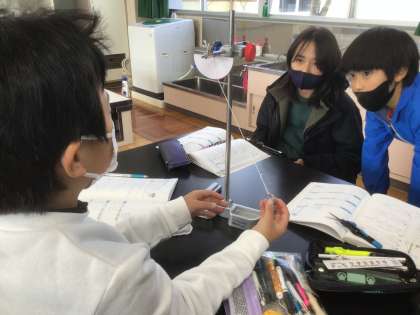 ふりこのはたらき(5年生 理科) 公開日 2022/12/16 更新日 2022/12/16 お知らせ ふりこが1往復する時間は何によって変わるのでしょう? おもりの重さでしょうか?それとも、糸の長さ?ふりこの振れ幅? 実際に実験をして確かめました。 ふりこが1往復する時間の求め方は、 (1)ふりこが10往復する時間を3回測る。 (2)3回の平均を求める。 (3)(2)で求めた値を10で割る。 算数「平均」の学習で習った、歩幅の求め方が理科の授業で生かされています。