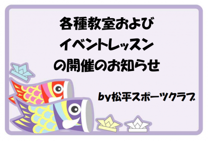 松平スポーツクラブから、子どもたちの体力向上と身体を動かすことの楽しさを伝える、各種教室やイベントレッスンのお知らせが届きました。