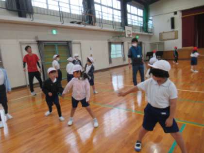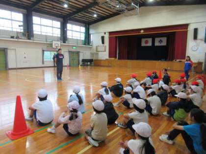 今日(5/7)の1時間目は、「全員リレー」の練習を体育館で行いました。