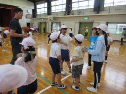 バトンパスの練習では、5・6年生がやさしく下級生にアドバイスする様子がたくさん見られました。本番が楽しみです!