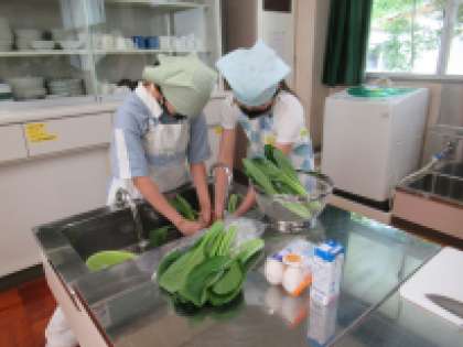 5月24日、6年生が家庭科の学習で調理実習をしました。