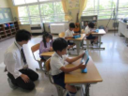 ICT支援員さんが来校し、各学年を回って、子どもたちに丁寧に教えてくださいました。子どもたちは、それぞれの学習課題に向けて、学習用タブレットで調べたり、資料を作成したりしました。私たち教員も、いろいろな手立てを支援員さんから教えていただけました。今後の子どもたちとの学習に、生かしていきたいと思います。