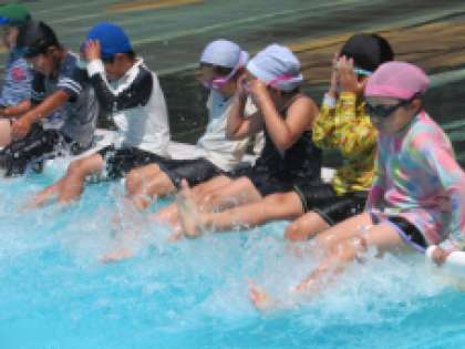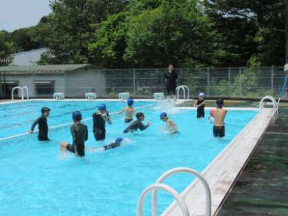 はじめに、各学年の児童の発達段階に合わせて、プールでの安全指導を行いました。今後も、個々の児童に合わせて、安全に留意しながら、楽しく水泳指導を行ってまいります。