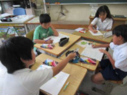 【3・4年生】虫眼鏡でアオムシを観察したよ
