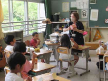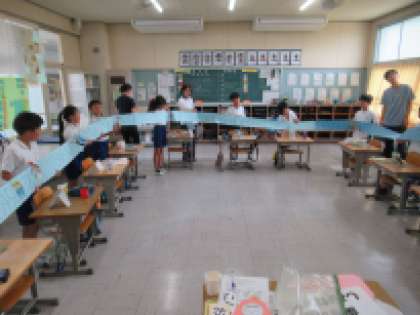 6月27日2時間目。3人の歯科衛生士さんをお招きし、1・2年生、3・4年生、5・6年生に分かれて、歯科講習会をしていただきました。それぞれの発達段階に合わせた内容で、とてもためになるお話が聴けました。虫歯にかかわるミュータンス菌も、位相差顕微鏡で、実際に見ることができました。