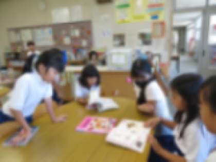 本校では、休日にゆっくり本を読むことができるように、金曜日は2冊借りることができます。図書委員会の子が優しく丁寧に手続きをしてくれるので、朝から図書館にはたくさんの子どもたちが来ていました。テーブルでは1年生から6年生までの子が一緒に仲良く本を読んでいる姿が見られ心がほっこりしました。暑い日が続きなかなか外で遊べないこんな日はみなさんも読書をしませんか。