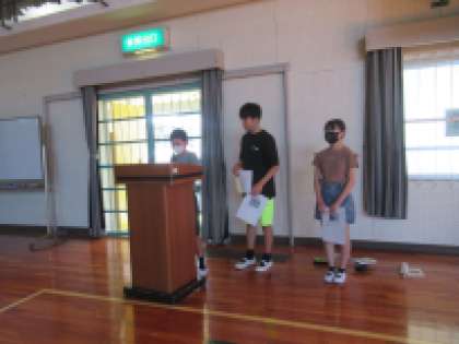 10月5日(土)の「六所のつどい」に伴い、事前の打ち合わせ会をさわやかタイムに体育館で行いました。全校児童が体育館に集まるのは、久しぶりです。