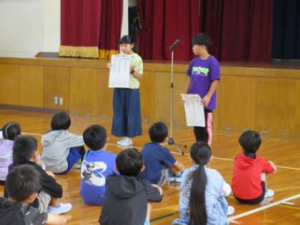 表彰も行いました。友達の頑張りに温かい拍手が送られました。また、今月のめあてについても、各委員会の代表児童がしっかりと発表しました。このような子どもたちの様子に、後期からの学校生活がますます楽しみになりました。